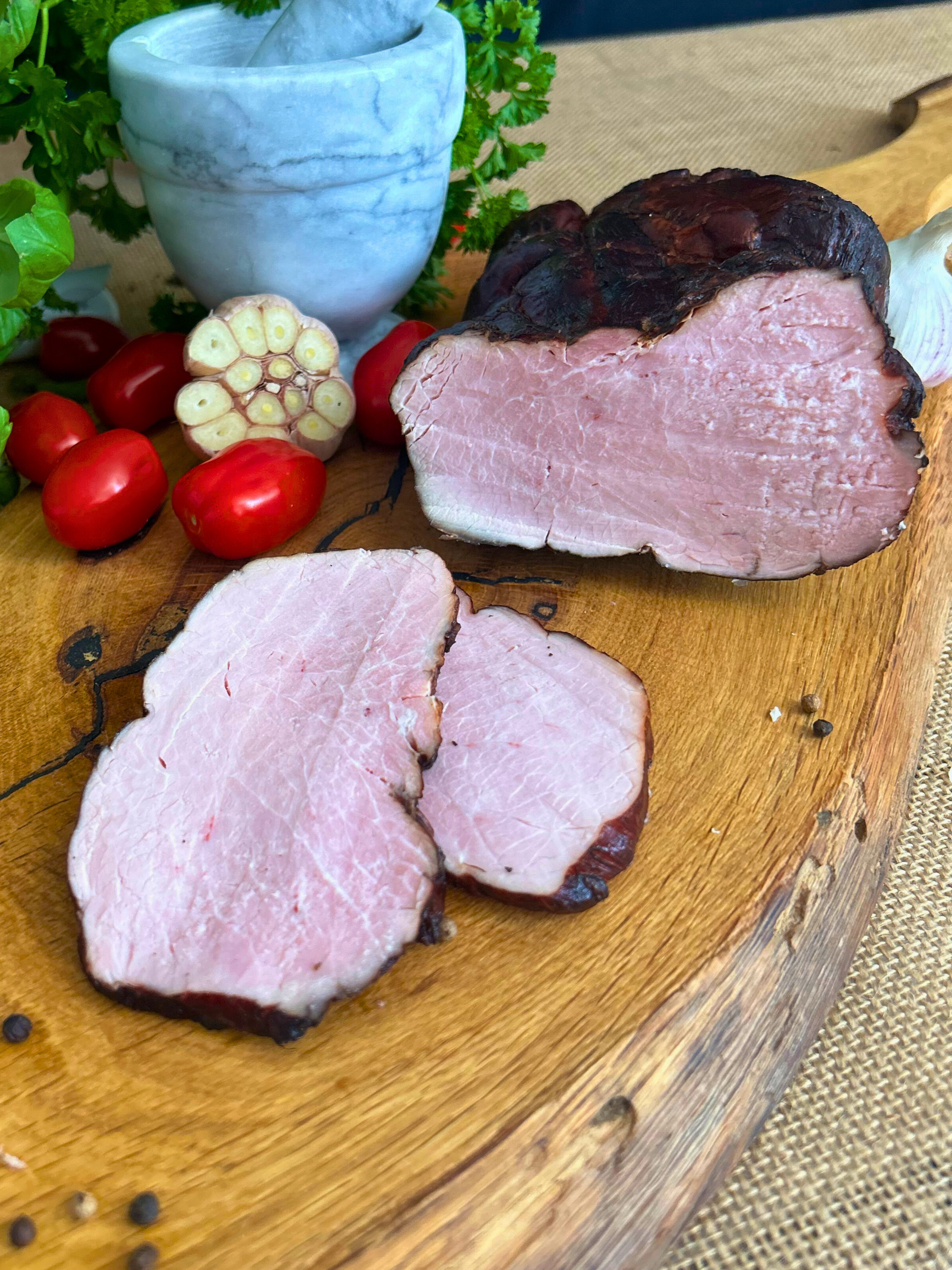 Szynka ze Strychu to wędzonka o wyjątkowej jakości, wykonana z soczystej szynki wieprzowej, wędzona na naturalnym dymie.