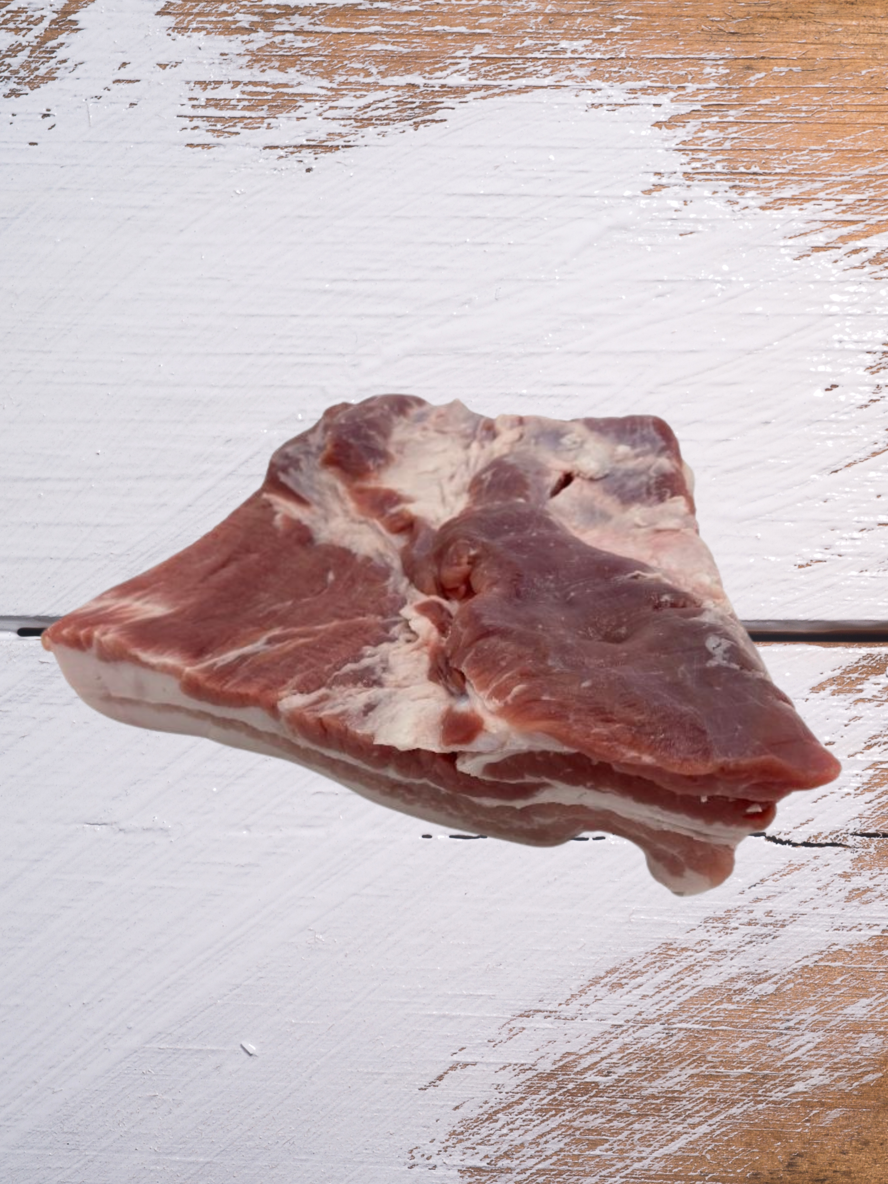 Surowy boczek ze skórą 1 kg – Naturalne mięso z lokalnych i sprawdzonych hodowli, bez ulepszaczy i chemii. Doskonały wybór do pieczenia, duszenia i innych domowych potraw.